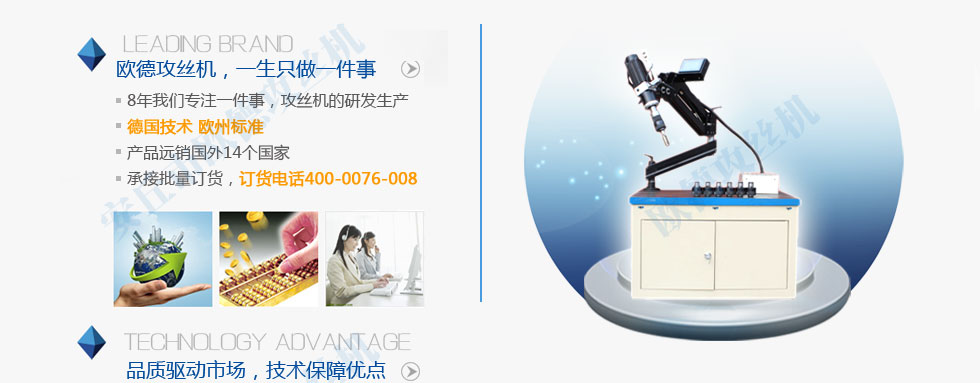 安丘市歐德機械有限公司是山東省有名的電動攻絲機生產研發制造企業,公司常年對外供應多種數控攻絲機產品并提供相應的技術指導和售后服務,公司發展進取氣動攻絲機制造技術,在螺紋鋼上絲機產品技術層面獲得多次改進,公司的鋼筋上絲機產品質量也發生了質的飛躍。